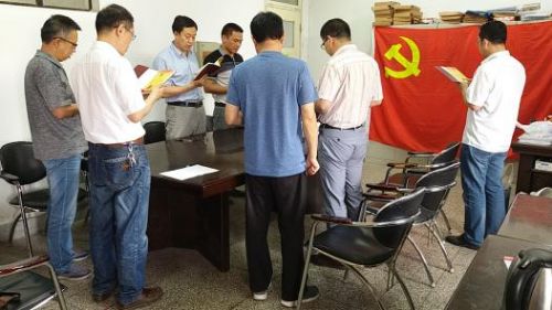 为庆祝建党96周年,进一步推进“两学一做”学习教育,增强党员的党章意识、政治意识,坚定爱党、信党、跟党走的理想信念,2017年6月30日,机制教工党支部组织全体党员开展了“庆七一,我们回顾初衷” 活动。党支部书记张永贵带领大家重温入党誓词,党支部组织委员宋孝宗作为领誓人,带领全体党员庄严宣誓:“我志愿加入中国共产党,拥护党的纲领,遵守党的章程,履行党员义务,执行党的决定……”短短的12句入党誓言,句句铿锵有力,在场的全体党员以饱满的激情和声音传达出了身为共产党员的自豪感与使命感,展示了机制教工党支部全体党员对党的事业奋斗终身的不变理想和追求。通过重温入党誓词活动,激发了全体党员的责任感、荣誉感和使命感,增强了党性观念,强化了党员意识,使每位党员牢记党员身份,自觉履行党员义务,践行入党誓词,坚定立足本岗、创新奉献的信心与决心。
