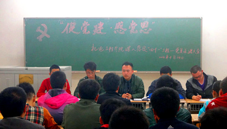 会上,支部书记巨龙老师对公司“四个一”工程作了再次的说明,并强调了此项工程的重要性和积极意义。接着各党支部代表分别以“中国梦,我的梦”、“喜迎党代会”、“党员应该起到的作用”等方面发表了自己的观点。然后,党支部宣传委员也发表了演讲,提出各班党员要积极带动各班同学学习,参与各项活动,帮助后进生的学习和生活。会议强调“四个一”工程要积极实行,确保每个党员、预备党员和入党积极分子能起到良好的带头作用,带领各班员工共同前进。同时,提出“每个党员身份就是一盏明灯,不光要照亮自己前进的道路,也要为身边的同学指引前进的方向”。
