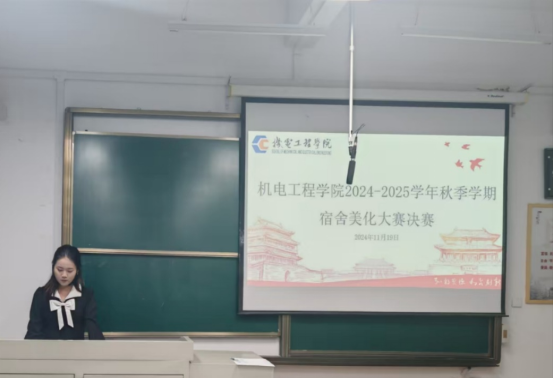 决赛现场,气氛活跃。同学们围绕宿舍成员基本情况、宿舍美化设计理念、宿舍美化创新点、宿舍成员风采展示四方面进行讲解展示。评委们肯定了同学们的创新点和宿舍美化成果,表明宿舍不仅是学习和休息的地方,更是展现个性和团队精神的空间,希望同学们能够将这次活动中学到的东西应用到日常生活中,让宿舍成为更加温馨和谐的家。