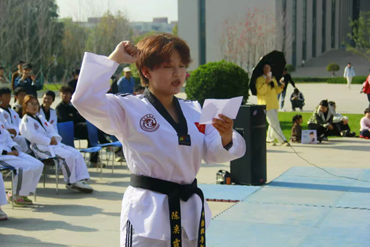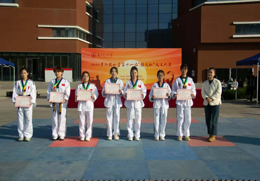比赛活动现场井然有序,精彩纷呈,选手们在比赛过程中展现出对传统文化的深入理解和其精淇技艺。此次大赛共设有跆拳道品势、双截棍、劈挂拳、罗汉拳、规定拳等八个武术文化比赛项目,裁判团本着公平、公开、公正的原则,最终评选出一等奖10名,二等奖25名,三等奖30名,优秀奖55名,优秀运动员7名。嘉宾为获奖选手颁发了荣誉证书并合影留念。
