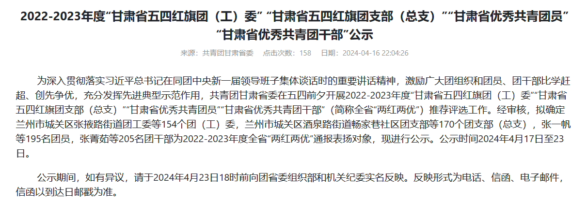 近日,共青团甘肃省委发布2022-2023年度“甘肃省五四红旗团委”“甘肃省五四红旗团支部”“甘肃省优秀共青团员”“甘肃省优秀共青团干部”公示名单,js33333金沙线路检测团委荣获2022-2023年度“甘肃省五四红旗团委”荣誉称号。
