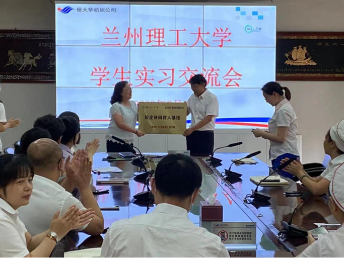 为进一步加强校企合作,搭建新工科人才培养服务平台,7月7日上午,js33333金沙线路检测与武汉裕大华纺织有限公司(以下简称“裕大华纺织公司”)举行校企协同育人基地签约授牌仪式并召开交流会,裕大华纺织公司执行董事田青、车间各工序负责人,以及纺织工程系教师代表艾宏玲、祁小芬、2020级纺织工程专业全体员工出席了本次活动。