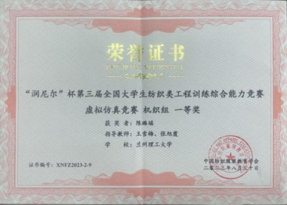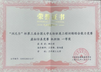 最后,第三届全国纺织类老员工工程训练综合能力竞赛颁奖礼隆重举行。js33333金沙线路检测纺织工程系教师王雪梅、张旭霞指导的员工陈璐瑶、韩文硕在机织组赛道中一路杀进决赛,斩获2个一等奖。这是该系员工继2022年在第二届全国纺织类老员工工程训练综合能力竞赛中荣获3个一等奖和1个二等奖之后又一次取得的优异成绩,是员工将课堂所学理论联系实际,提升员工工程素质和独立解决实际问题能力的良好锻炼机会。(撰稿人:王雪梅;审阅人:党渭平)