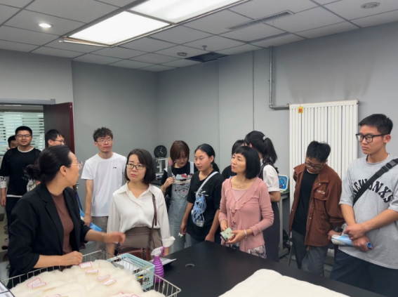 首先,中心工作人员向同学们简要介绍了该中心的基本情况、工作职能、检验能力以及业务开展情况。随后,在工作人员的引导下,师生们逐一参观了恒温恒湿试验室、物检室、化验室以及模拟昼光试验室。实验室的专业性和科学性令人深感检验、监测工作的高标准与高精度,同学们切身体会到了纤维质量检测的精细程度以及监测中心工作人员精益求精的工作精神。