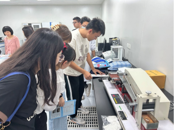 期间,工作人员详细为师生们解读了纤维质量检验的工作流程,从参考检验标准、选择检验方法、样品处理技巧、仪器设备操作、数据综合分析,到最终检验结果的判定,使得师生们全面了解了从收到样品到出具完整检验报告的整个过程,深刻领会到一名纤维检验人员在工作中肩负的重大责任。最后,在工作人员的指导下,同学们积极参与,结合所学专业知识,亲手实践相关的检验项目,将书本所学的理论知识与实际操作紧密融合在一起。