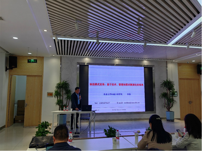 报告会上,苏春教授从系统工程视角分析制造的本来含义、制造系统规划设计与运营涉及的基本元素深入分析。以四次工业革命为主线,分析制造模式的演变规律,总结制造业具有奠基性和标志性成果、关键技术、管理理念、重要人物及其贡献等。在此基础上,分析制造学科内涵和外延的内在变化。分析工业4.0和智能制造技术产生的背景与基本特征,介绍智能制造典型应用案例。从员工终身职业发展的视角,分析机械工程、工业工程等相关专业毕业生应具备的专业知识与技能。高新勤教授介绍西安理工大学公司及工业工程专业基本情况、人才培养探索与实践和专业建设与实践成效等方面,从实例出发,深入讲解了工业工程公司产品过程中可能存在的相关问题。在现场交流环节,苏教授和高教授与公司师生就工业工程学科发展、员工培养等问题进行了讨论,并耐心细致地就有些问题进行了解答,并结合个人及研究团队的有关经验给出了极具价值的建议。