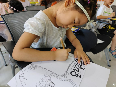 图为青年之家“童心向党,筑梦未来”系列活动中一位小朋友正在进行创作