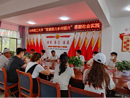7月27日-28日,实践队先后来到平川区响泉村、周家地村与当地村委会成员就本次“推普助力乡村振兴”活动进行了座谈交流。座谈会上,实践队了解到响泉村现辖4个村民小组,665户、2512人,当地农作物主要以小麦、玉米、胡麻等为主,经济林以桃树为主,由于大多数村民常年在家务农,多以方言进行交流,导致普通话掌握程度不够熟练,主要集中在留守妇女、空巢老人、学前和学龄儿童等人群。座谈交流中,大家一致认为使用国家通用语言是实现乡村振兴的必由之路,推广普通话是很重要的环节。