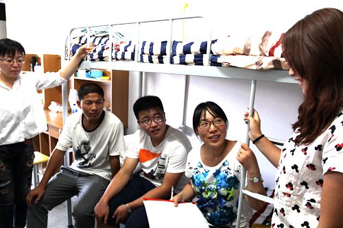 9月6日下午,公司党委书记张君、党委副书记武军莉等院领导、辅导员、新生班主任到宿舍看望2015级新生。