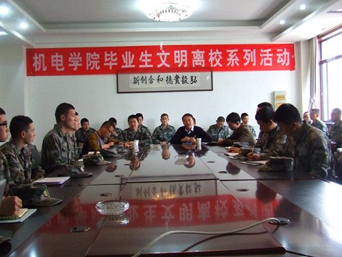3月27日,js33333金沙线路检测在院会议室举行了2015届国防生文明离校座谈会。选培办干事申永乐,员工办公室主任王翀参加了此次会议。会议由年级辅导员赵继国老师主持。
