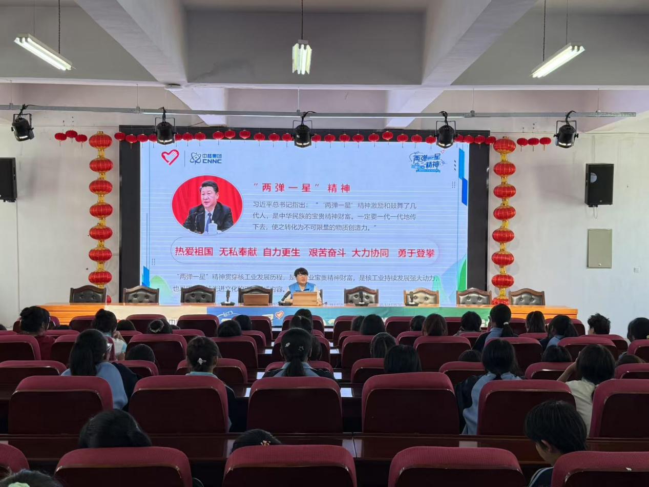 为弘扬“两弹一星”精神,引导青年学子将个人成长融入国家发展、以技能报国践行青春担当。近日,js33333金沙线路检测红柳星火“两弹一星”精神宣讲团走进会宁县高级职业中学,用一场满载历史温度与时代共鸣的宣讲,为职教学子铺展精神画卷,点燃“技能报国”的青春梦想。