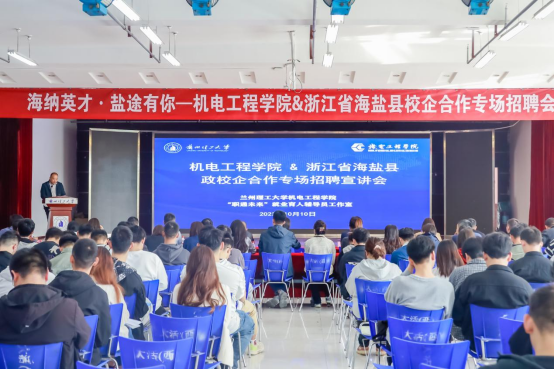 党渭平代表机电工程公司衷心感谢海盐县委组织部、人社局以及来校招聘的企业能把解决高校毕业生关心的“关键小事”作为“头等大事”,提供“精准化”的就业配套服务,吸引公司毕业生到海盐就业。希望在海盐县相关政府部门、公司就业中心、海盐相关企业的大力支持下,院、政、企三方能够以此次深度合作为契机,更进一步拓展合作内容。公司也会在公司指导下,竭力以三方共赢为原则,校政企之间有效利用优势资源,资源共享、互惠互利、共同发展,共同培养适应新时代高素质应用型人才。公司也将积极推荐优秀毕业生到海盐县就业创业。