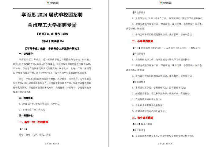 天青色等烟雨,我在学而思宣讲会现场等你~了解更多信息,扫描下方二维码加入学而思-兰理工招聘服务微信群