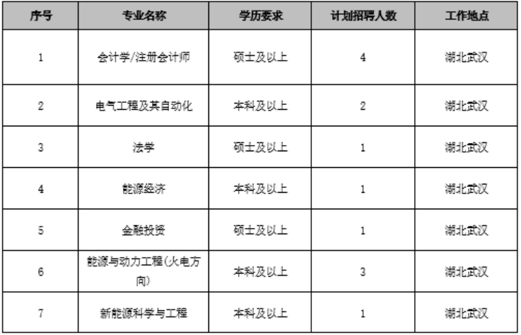 地址:武汉市徐东大街137号湖北能源集团股份有限公司3607室人力资源部