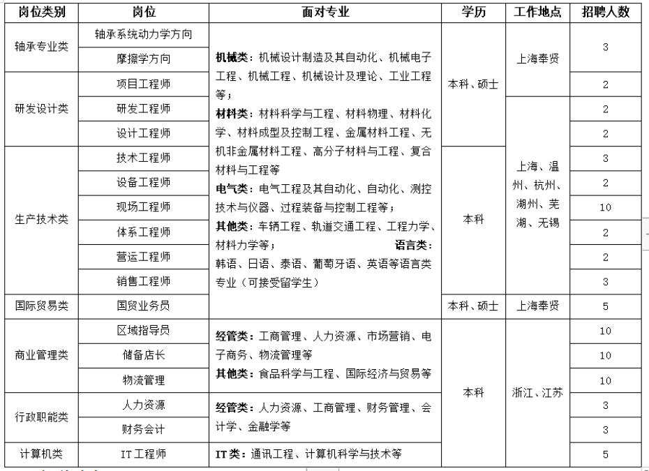 物资设备类:物流管理、物流工程、机械工程、机械制造及其自动化等专业。