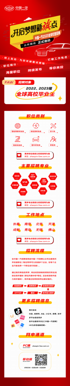 中国一汽2023全球校园招聘