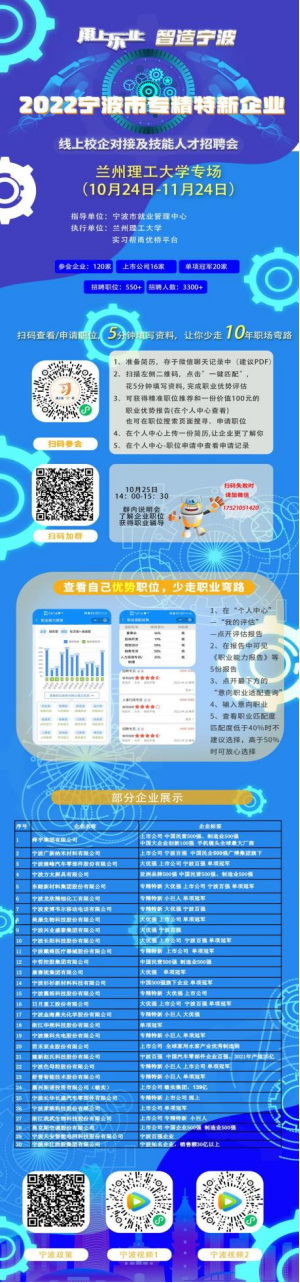 2022宁波市专精特新企业线上校企对接及技能人才招聘