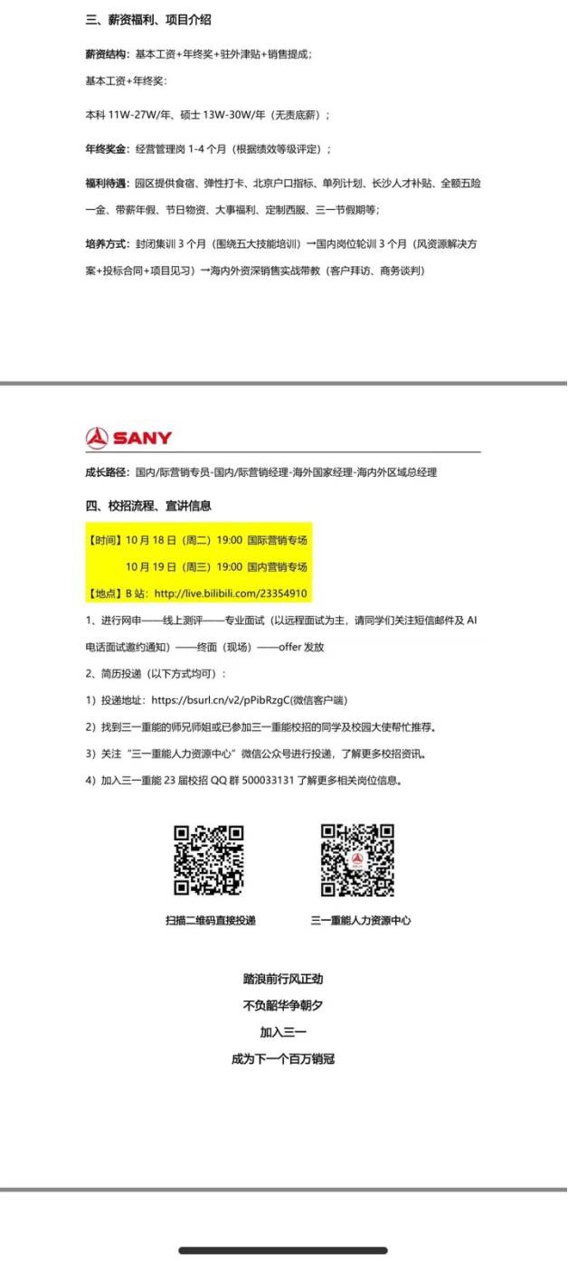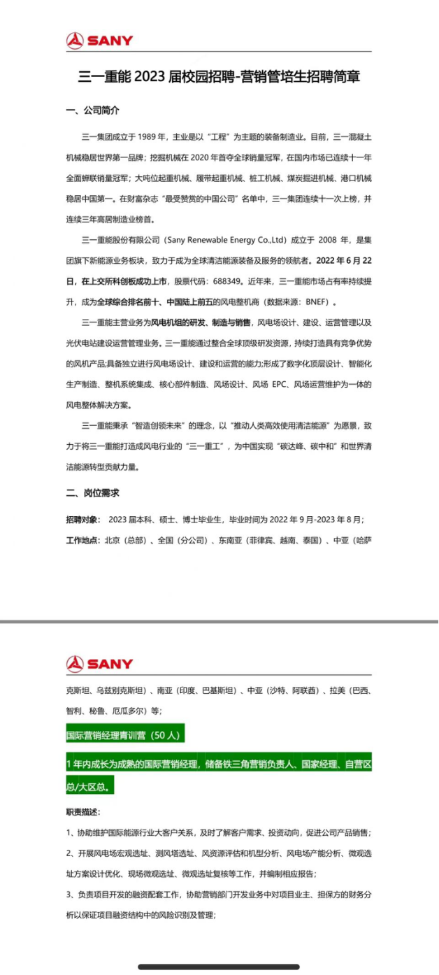 三一集团新能源事业部23届校园招聘空中宣讲震撼来袭,学长学姐带你走进三一,营销岗位大放送