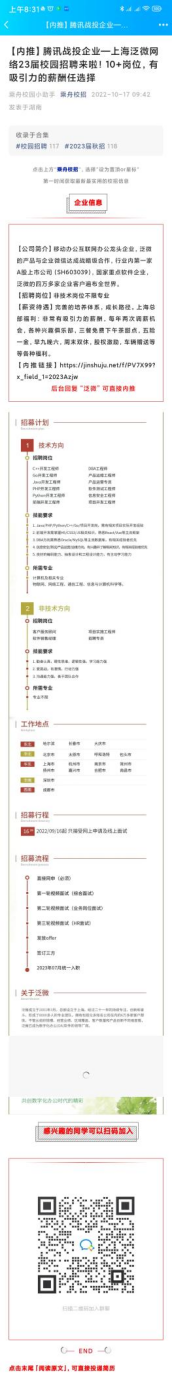 腾讯战投企业——上海泛微网络23届校园招聘来啦!