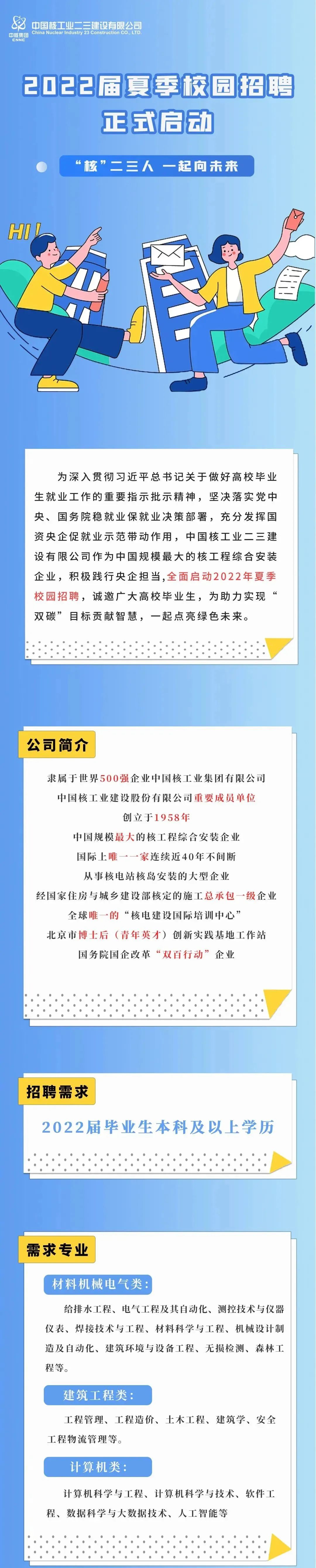 中国核工业二三建设有限公司2022年夏季校园招聘