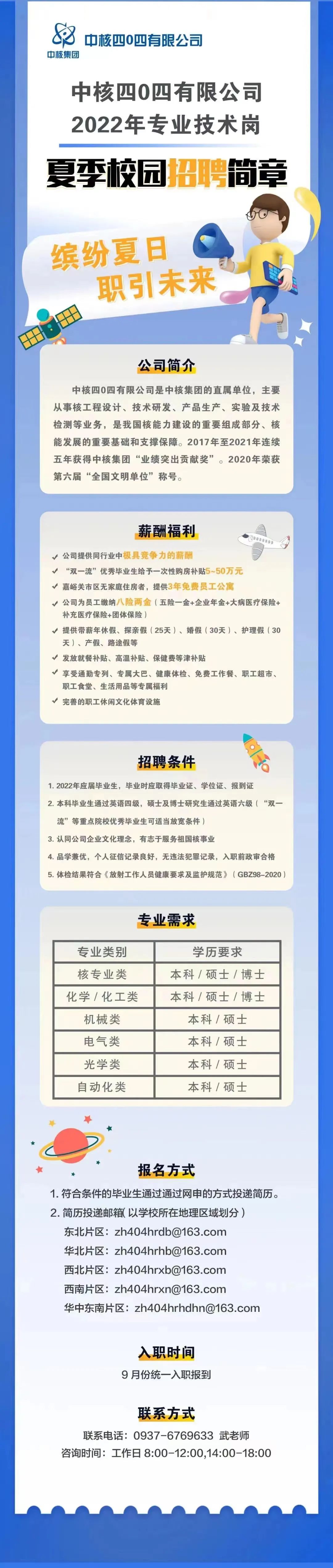 中核四0四有限公司2022年应届毕业生夏季校园招聘简章