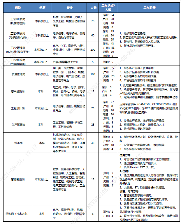 招聘专业:新能源科学与工程,机械电子工程,应用物理学,无机非金属材料工程,材料成型及控制工程