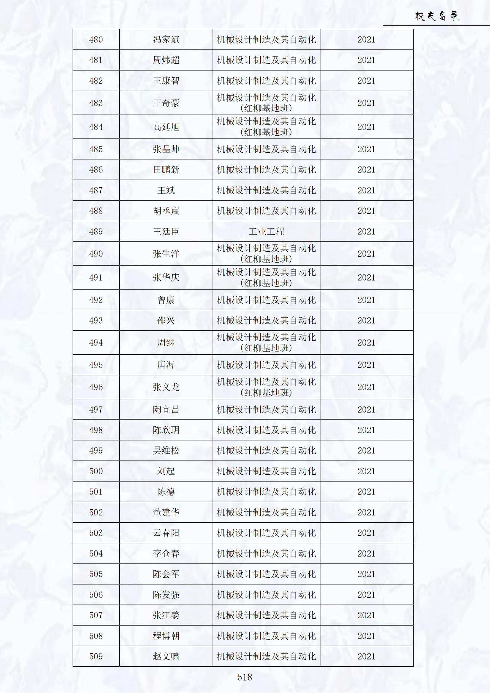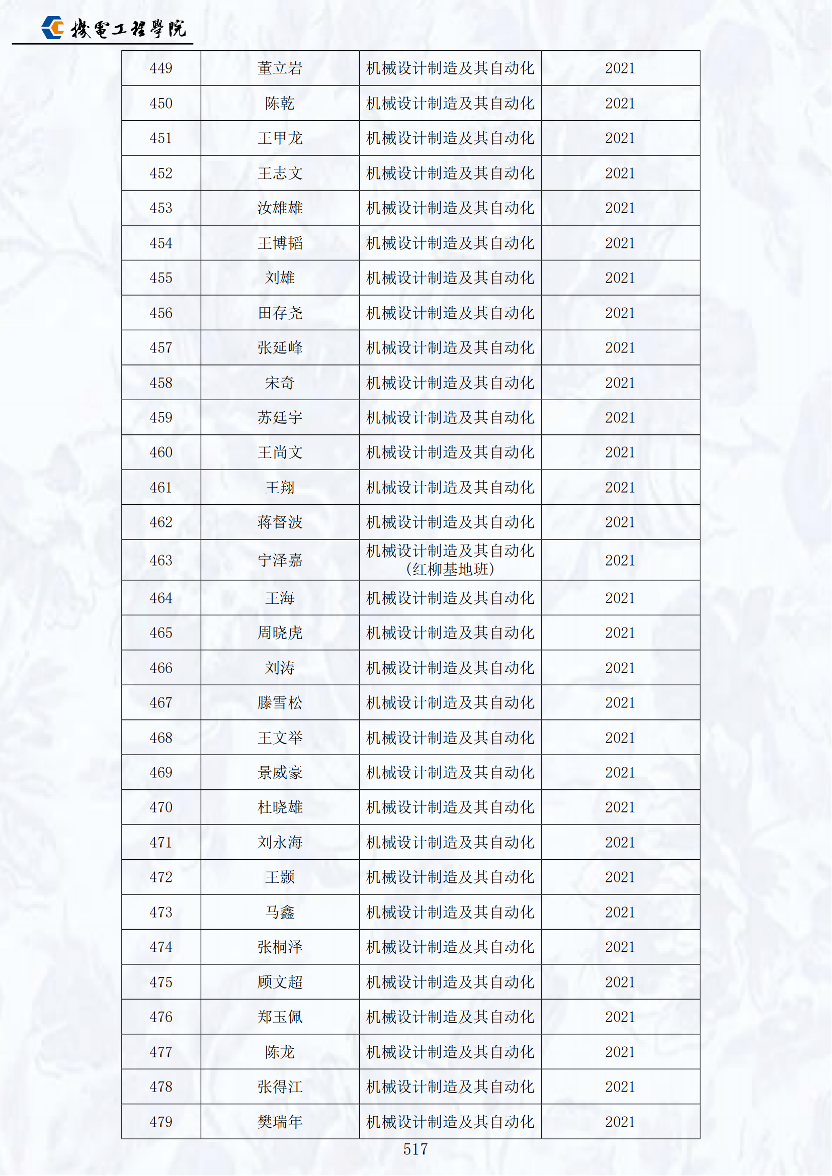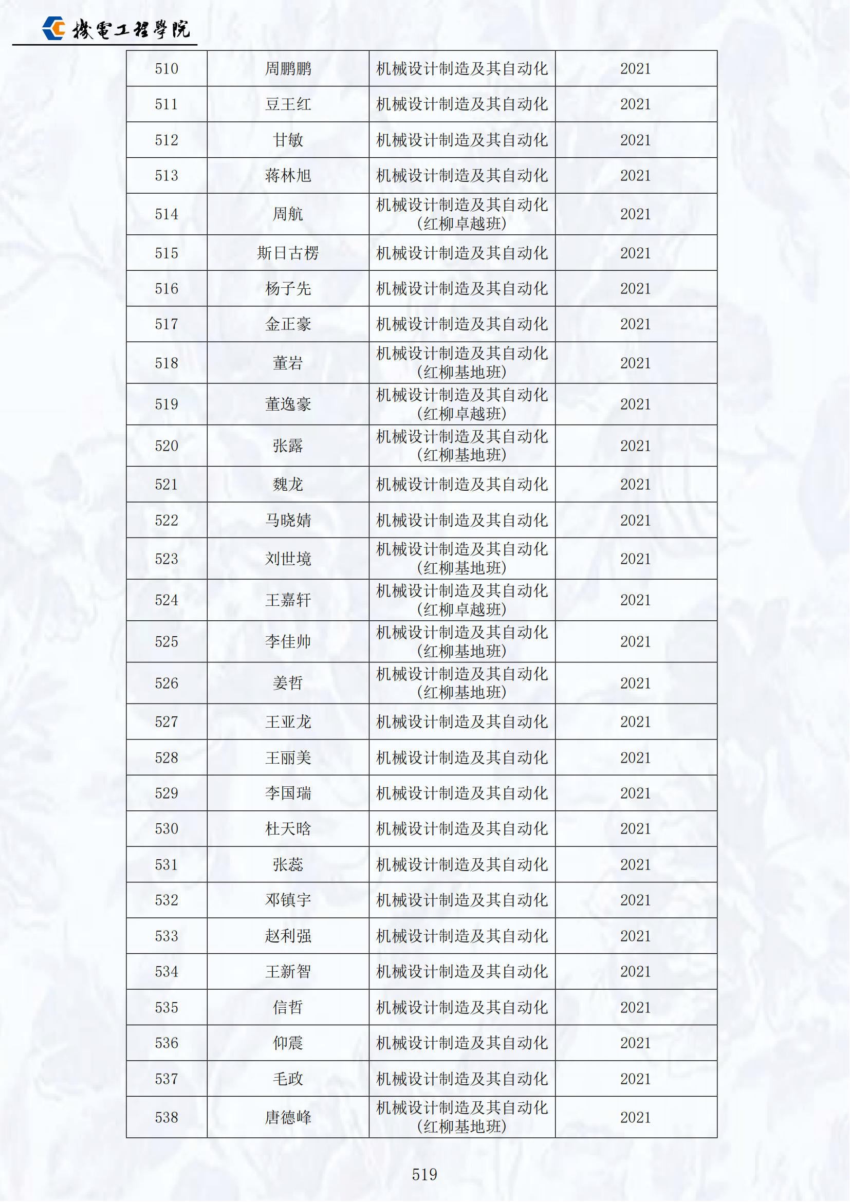 2021届员工名录
