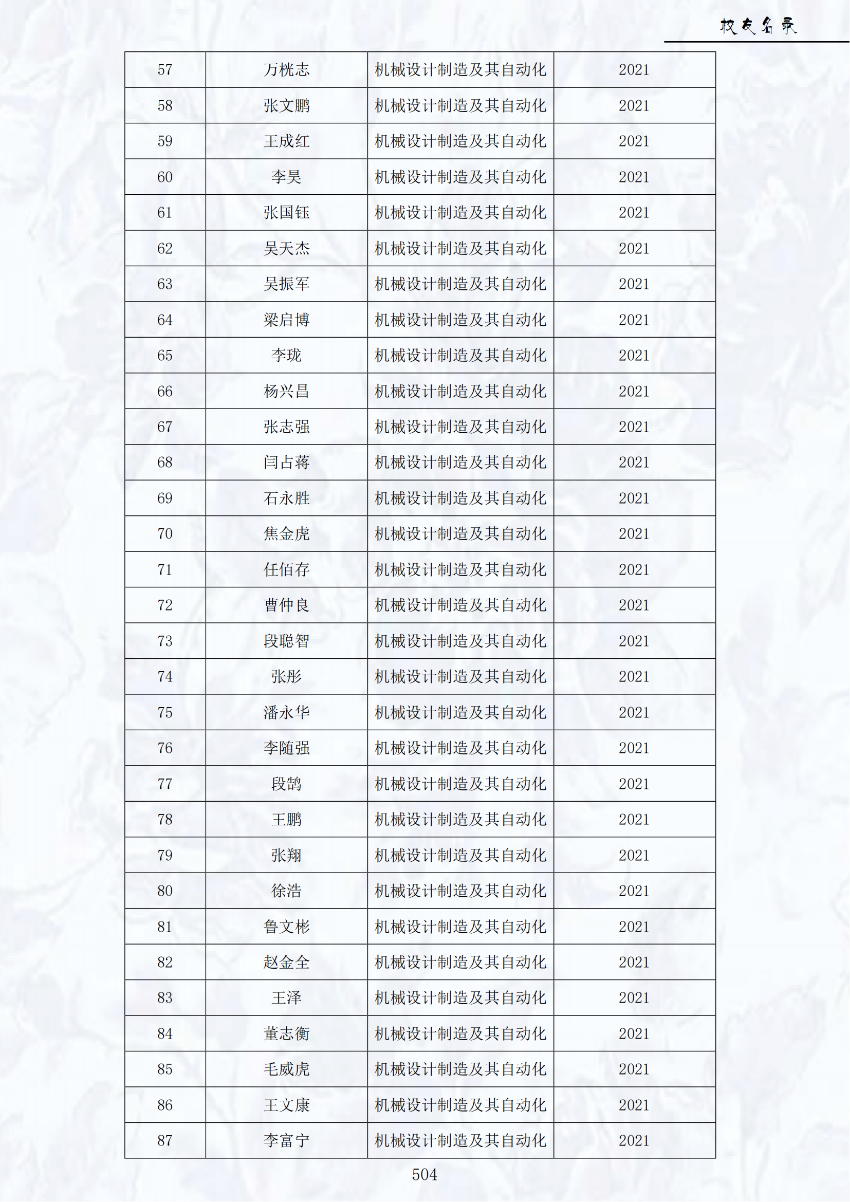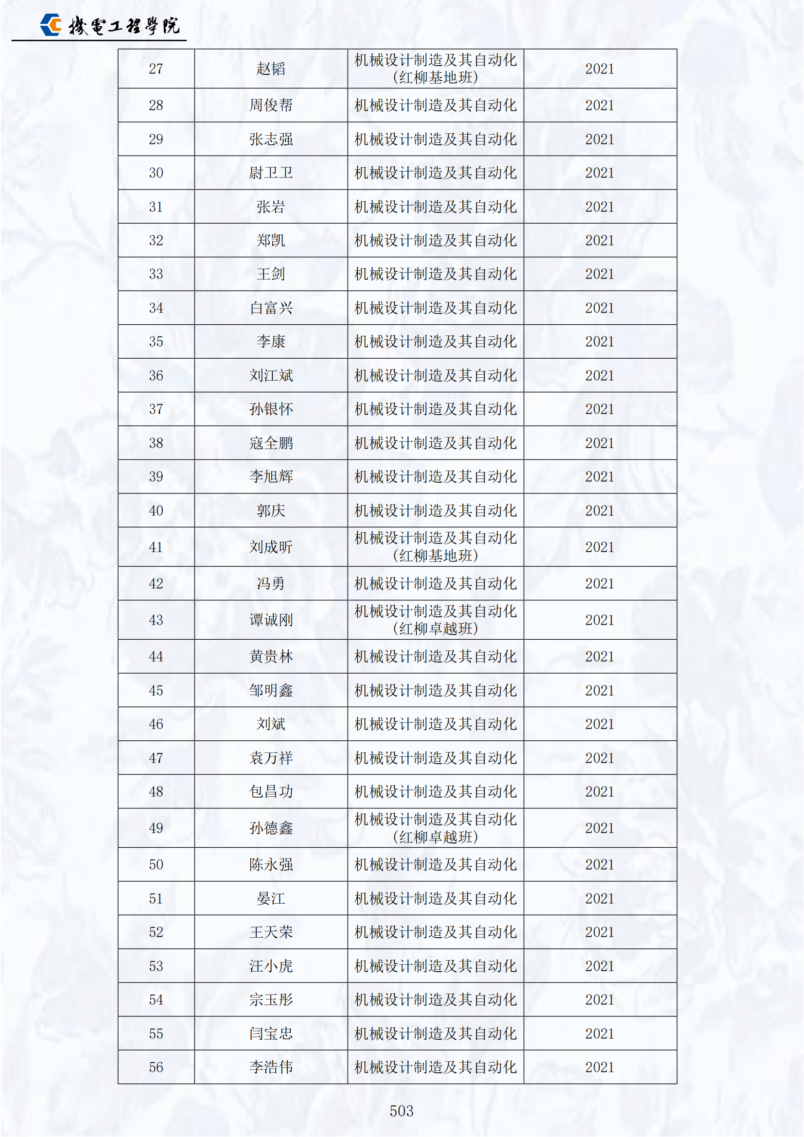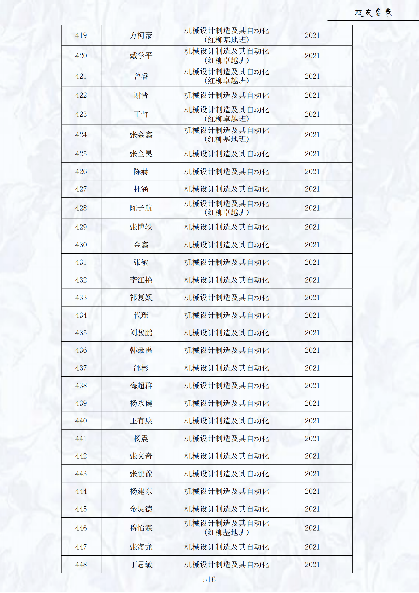2021届员工名录