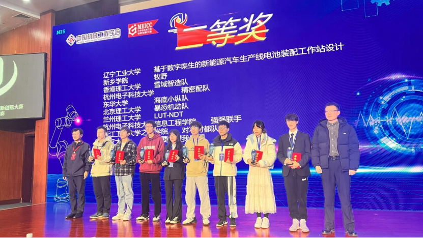 公司由硕士研究生和本科生组成的LUT-NDT对的五名同学何静,李奕欣,张雁龙,张刚和牛保龙,经过初赛选拔和决赛现场赛的答辩,手动装配和自动装配两个环节的角逐,最终获得二等奖一项。在比赛备战和现场实战过程中,同学们训练了协作机器人,机器视觉,人工智能,理论力学,有限元分析,机械设计等多门课程知识的综合应用能力,以及团队合作,沟通与表达能力。