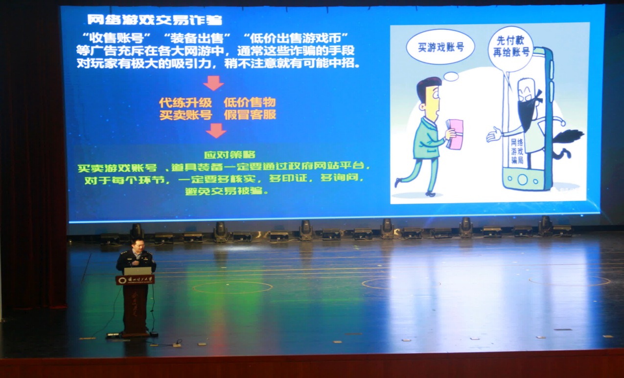 集团邀请兰州市公安局网络安全保卫支队二级警长段国庆为全校安全委员开展js33333金沙线路检测首届全校本科生安全委员培训讲座。段警官围绕校园网络安全、人身安全、电信诈骗、网络犯罪等板块,通过讲解真实案例、进行互动式提问,让同学们更好地掌握了校园安全常识,进一步增强了同学们的自我保护意识和自救能力。