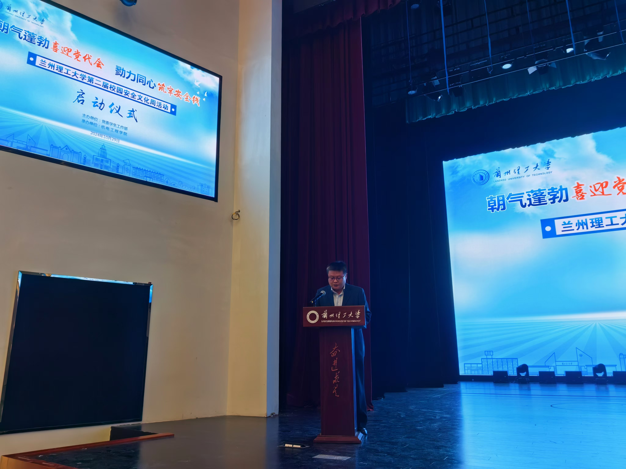 10月29日下午,启动仪式在彭家坪校区老员工活动中心红柳剧场顺利举行。兰州市公安局网络安全保卫支队副大队长杨伟,兰州市公安局网络安全保卫支队二级警长段国庆,党委员工工作部、党委保卫工作部、实验室管理处、校团委、校医院、后勤管理处、js33333金沙线路检测相关负责人出席,各公司相关辅导员、全体本科生安全委员共计400余人参加,启动仪式由公司党委副书记骆焕涛主持。启动仪式上js33333金沙线路检测经理安宗文介绍了本次活动的基本情况,公司党委员工工作部副部长刘洪国代表主办单位致辞,并向安全教育志愿宣讲团代表授旗,安全教育志愿宣讲团成员代表发言、安全委员代表宣读了《校园安全承诺书》并向全体师生发出安全倡议,全体与会领导为志愿宣讲团成员代表佩戴“安全达人”红袖章。