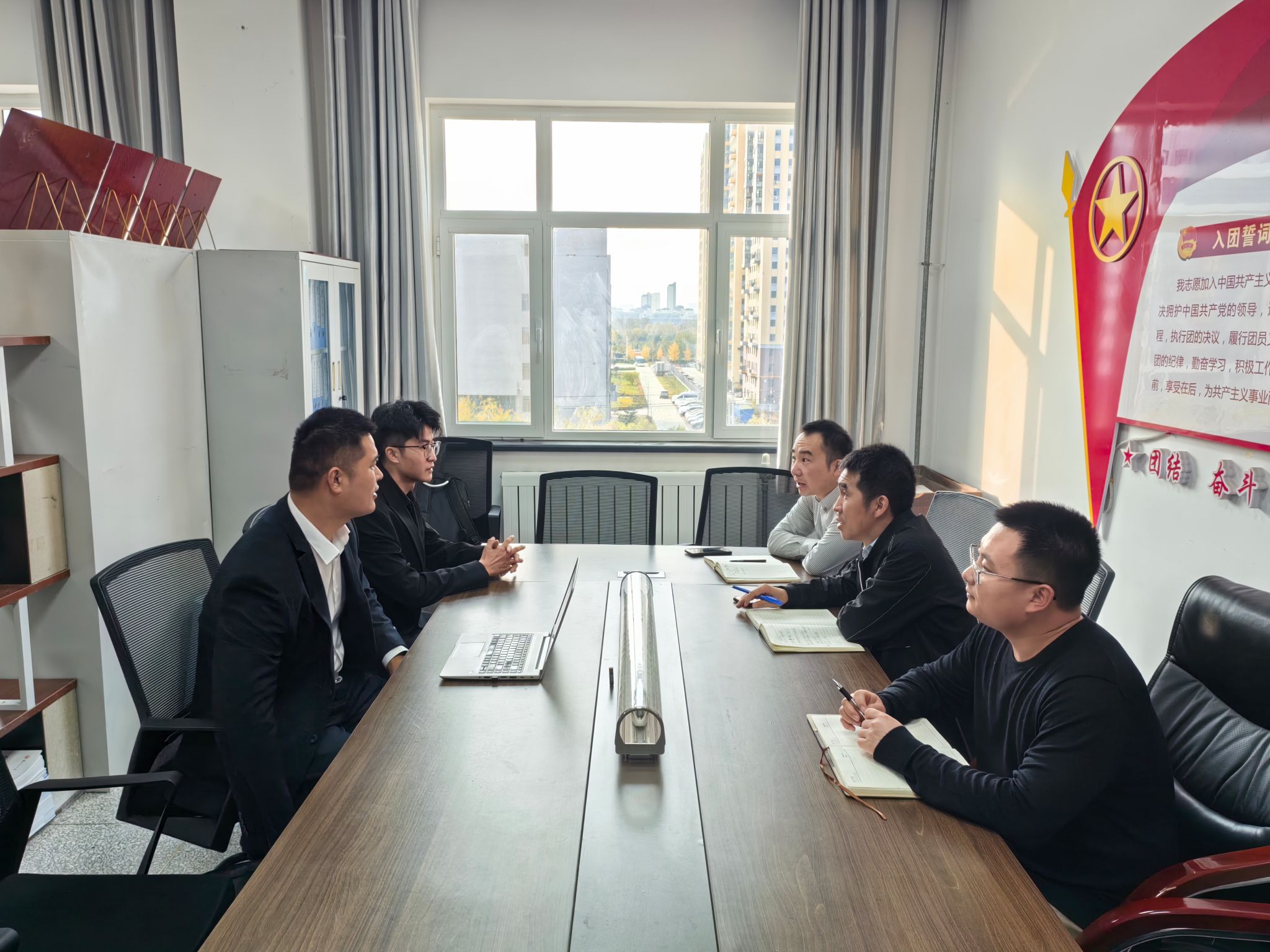 11月12日与14日,中国重型汽车集团有限公司和东方雨虹防水技术股份有限公司分别到公司开展交流座谈。公司党委副书记骆焕涛、员工工作办公室副主任冯玉玺及就业工作辅导员参加座谈交流活动。