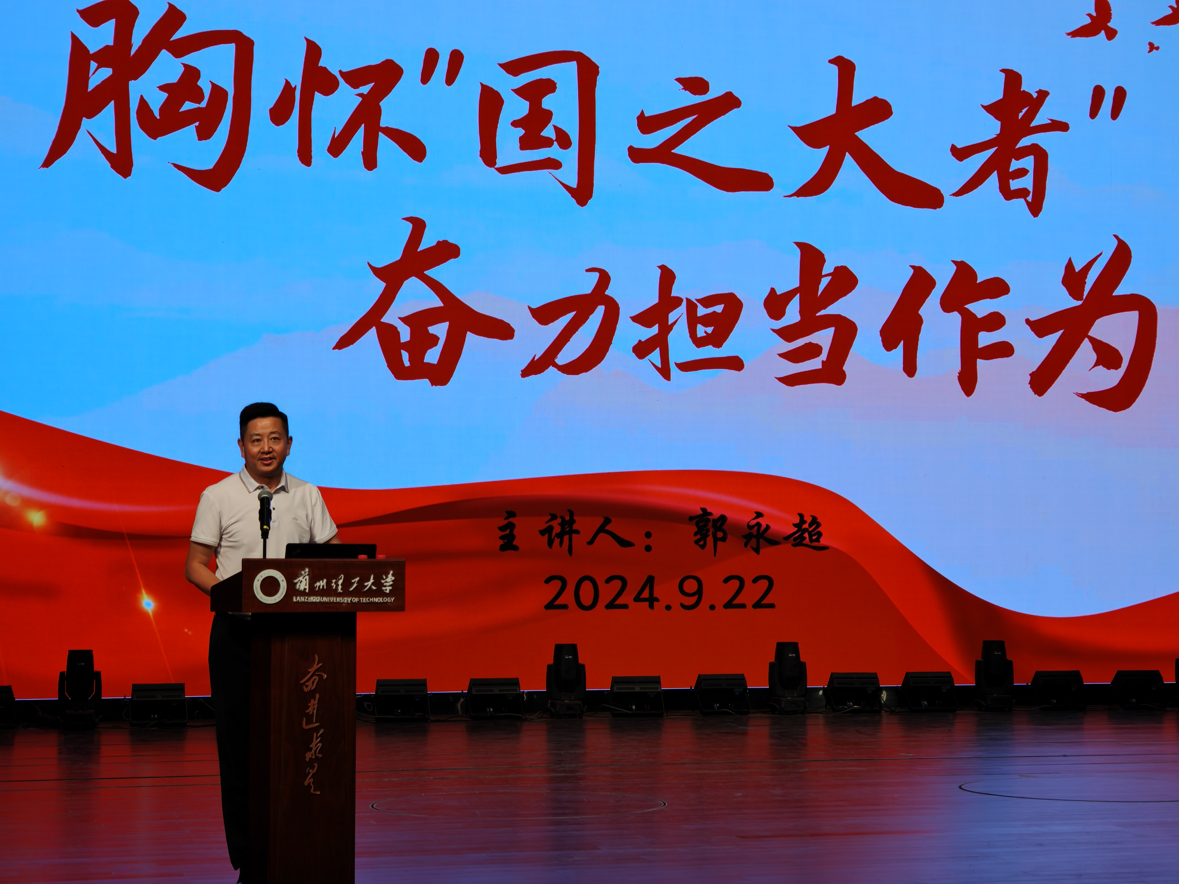 郭永超员工以《胸怀“国之大者”奋力担当作为》为题,结合自身职业生涯发展经历,以贯穿概括党的“五史”为切入点,通过“世界变局与新时代变革”“习近平新时代中国特色社会主义思想”“青年人如何更好适应时代发展,融入时代大潮”三大板块引导同学们建立正确的认知观念,培养敏锐的洞察力,辩证把握危与机。郭永超鼓励新生们,要在科技强国建设新征程中,准确把握人生定位,始终保持身心健康,胸怀国之大者,厚植家国情怀,为中国式现代化挺膺担当。