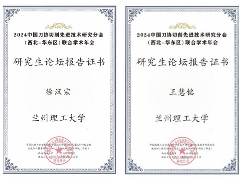 2024年8月9日至11日,公司可靠性制造团队参加了在甘肃天水举办的“2024年中国刀协切削先进技术研究分会西北-华东区联合学术年会”。团队的2022级硕士研究生徐汉宗和2023级硕士研究生王慧铭分别做了题为“γ-TiAl合金表面纳米划痕行为的分子动力学模拟”、“孪晶单晶γ-TiAl合金纳米切削中棱柱形位错环的产生与演化”的学术报告。