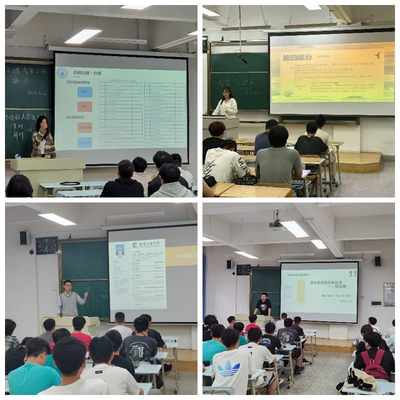 优秀毕业生吴蓉讲述了学习成绩,参加竞赛,参与活动的重要性,平时积极参加各类比赛有利于全面提升自身能力;杨小婷细致入微地分享了自己的老员工活、考研经历,要具备良好的备考心态,保持积极乐观的态度,坚信自己的选择和努力。已经签约单位、就业成功的同学王冠博、孙洪斌分享了自己的求职经历、就业体会,王冠博着重分享了简历设计、投递、签约过程中的经验,并对合同签约关键细节进行提醒;孙洪斌介绍了打破就业信息差的方法、企业面试的相关流程、应对办法及谈薪技巧。智能制造专业不同年级的同学们听得聚精会神,并表示受益匪浅,在互动环节,同学们踊跃提问,学长们对其一一耐心进行解答。