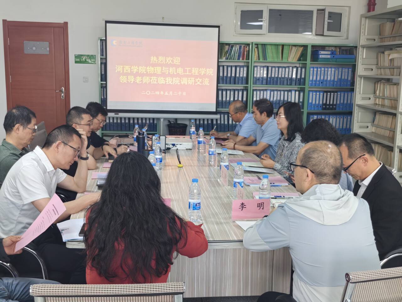 2024年5月20日上午,河西公司物理与js33333金沙线路检测陈艳副经理一行6人来公司就审核评估和专业认证等工作进行调研交流,公司赵家黎副经理及教学基层组织负责人参加座谈交流会。