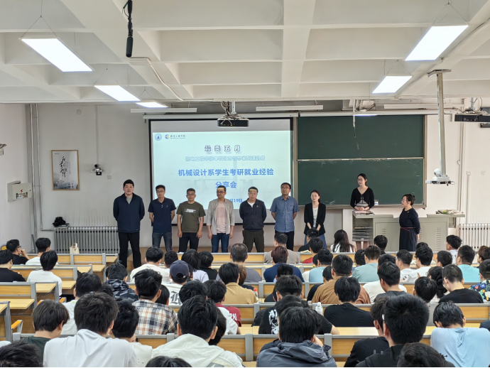 机械设计系教师党兴武副教授从专业发展前景、行业发展情况、考研形势分析以及本人多年班主任工作经验为同学们做了详细的讲解;青年博士教师李晓副教授结合班主任工作以及指导科创协会经验从职业生涯规划、科创竞赛、面试技巧等方面进行讲解。两位老师均鼓励同学们认清形势、抢抓机遇、珍惜时间、奋发努力、多向身边榜样学习,为自己的老员工活、为自己身后的家庭书写满意答卷。