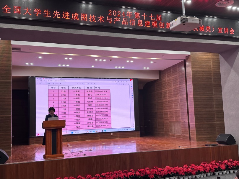 宣讲会首先由魏兴春老师介绍了本次校赛的参赛情况,包括参赛人数,阅卷情况以及存在的问题等;康永平老师从历届成图赛的命题思路出发,介绍了赛题的发展历程;宋波老师就成图赛轻量化赛道进行了讲解,鼓励同学们积极探索;郑敏和李海燕两位老师分别对本次校赛二维和三维试题进行了解析,分析了赛 题的重难点以及解题思路。