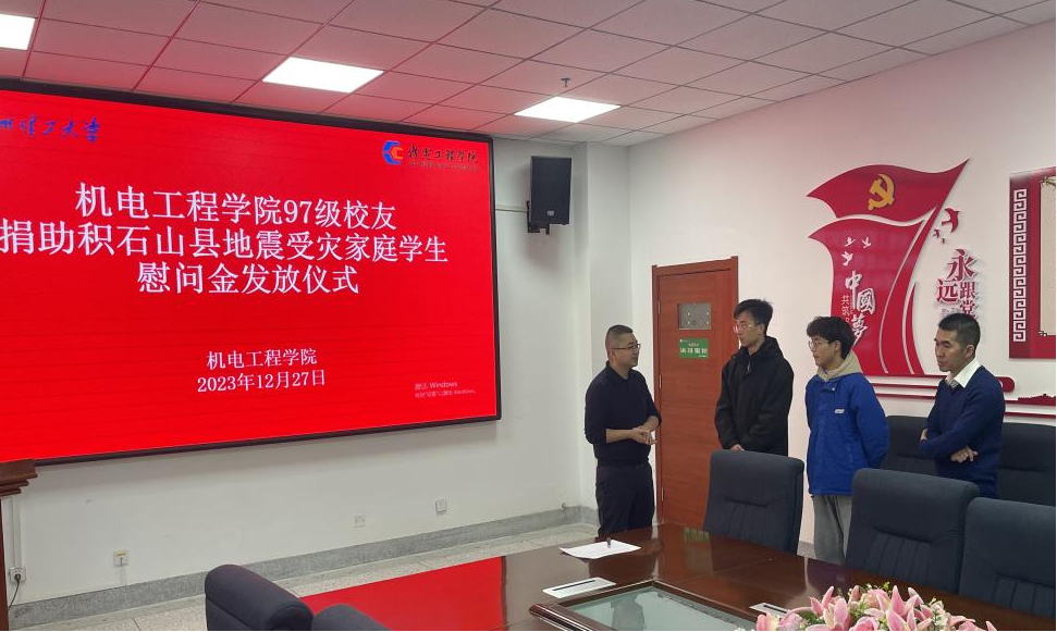 2023年12月18日深夜,甘肃省临夏回族自治州积石山保安族东乡族撒拉族自治县发生6.2级地震,造成重大人员伤亡和财产损失。灾害发生后,公司机制系97级的员工,立即联系公司,对积石山县员工家庭受灾情况进行了了解,同时也委托赵家黎副经理对2名家庭受灾严重的同学表达关心慰问,慷慨解囊,捐资助学。