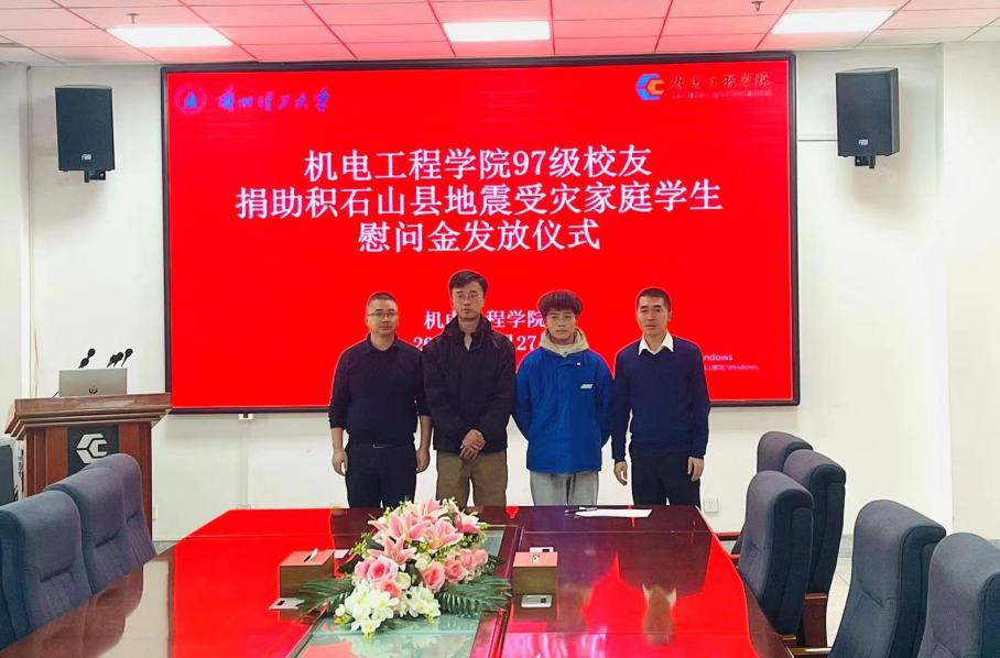 为帮助受灾地区员工的家庭早日度过难关,12月27日,js33333金沙线路检测机制系97级一名员工为因积石山地震导致家庭经济突发困难的2名员工捐赠了10000元的爱心助学慰问金。