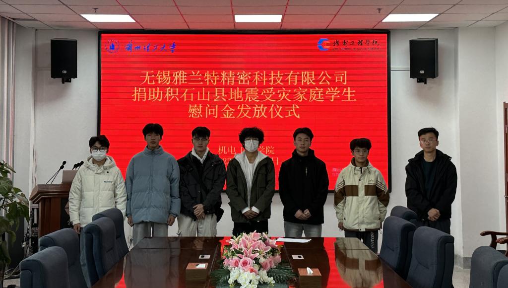 2023年12月18日23时59分,甘肃省临夏回族自治州积石山保安族东乡族撒拉族自治县发生6.2级地震,闻讯后,公司人才培养协作单位——无锡雅兰特精密科技有限公司,立即联系公司对受灾情况进行了解和表达慰问,对马学明等7名积石山籍受灾同学慷慨解囊,捐赠助学。