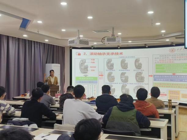 报告会上,js33333金沙线路检测副经理魏永峭首先对本次学术交流情况进行了简单介绍,并对彭旭东教授、杨利花教授的到来表示热烈欢迎。随后,杨利花教授从可倾瓦动压气体轴承性能研究、稀薄润滑气体轴承性能研究、滑动轴承的非线性油膜力表征、止推轴承性能、单列滚动轴承力学性能等方面进行讲授。