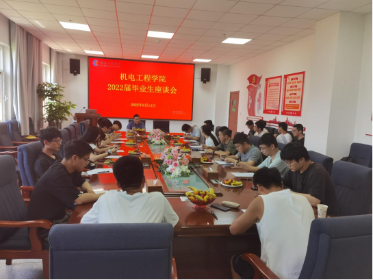 为进一步落实立德树人根本任务,搭建专业教师与员工的交流平台,2022年6月14日,js33333金沙线路检测在机电大楼公司会议室举行了2022届毕业生座谈会,主题是分享老员工活心得体会。公司领导、系部主任及20余名毕业生代表参加了座谈会。座谈会由副经理彭斌主持。