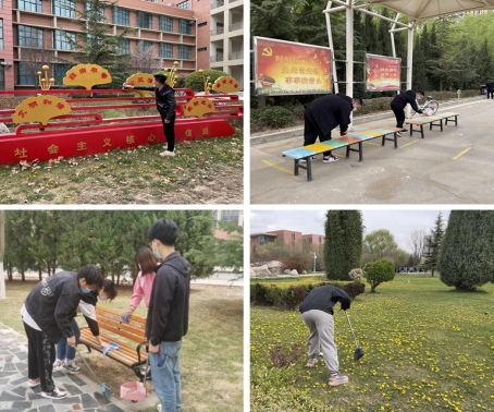 此外,公司团学组织工作人员及部分入党积极分子在宜海湖边、田径场、教学楼周边、绿化带等区域开展了环境清扫活动,大家拿着扫帚、簸箕、垃圾袋等工具,对校园内的枯枝落叶、干枯杂草、纸屑、烟头等垃圾进行了认真清扫,确保校园的干净整洁。