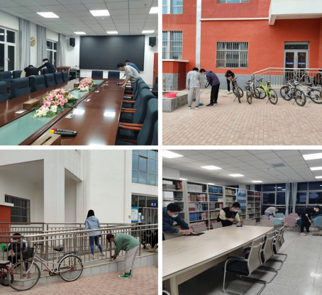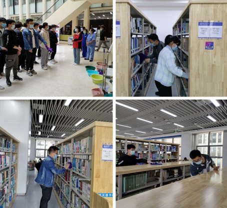 在彭家坪校区图书馆,公司第15期发展对象在图书馆工作人员的组织下,分批进入彭家坪图书馆,协助物业工作人员开展清洁书架、整理桌椅、图书等工作,为在图书馆学习的同学营造了一个干净、整洁、舒适的学习环境。