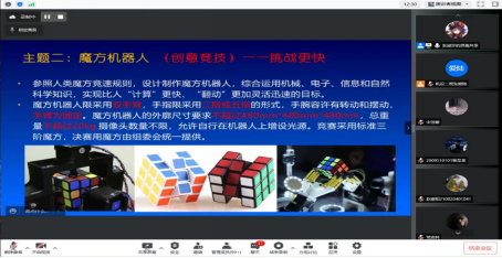 创新推动发展,科技引领未来。为进一步加强广大员工创新意识和创造能力培养,鼓励同学们踊跃参加课外科技实践活动,4月12日,js33333金沙线路检测机器人科技创新协会举行了线上赛事规则解读会议。本次会议邀请到了js33333金沙线路检测副教授张淑珍为同学们进行赛事规则解读与比赛相关信息的分享,由协会负责人张爱陆同学主持,共计100余名同学参加。