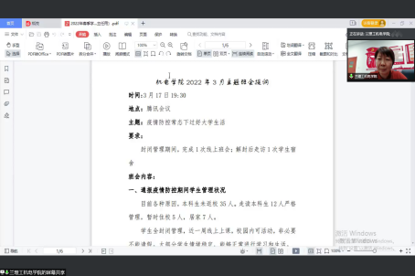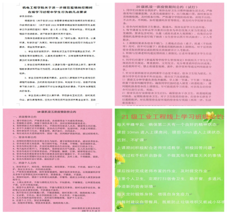严明纪律要求,落细日常管理。公司坚持线上管理和线下管理相结合、坚持“教育”和“惩戒”并重的方式落实落细员工日常思想、学习、生活。通过主题党、团日活动、主题班会要求员工严格遵守公司疫情防控规定,做好个人防护,认真落实请销假制度,严格执行“日报告、零报告”制度。在疫情防控期间,狠抓员工宿舍阵地,在学风建设、宿舍文明、习惯养成等着力:制定在线学习员工行为规范,严格执行课堂考勤考勤;推动本科生各班级制定班级公约、宿舍公约,培养员工自律意识及自我管理能力;在21级推行“云自习”,帮助员工养成良好学习习惯;以宿舍文化建设、创意作品征集、最美笔记、作业评选等为主体,开展文明宿舍创建系列活动,丰富同学们在疫情期间的课余生活。与此同时,公司对疫情防控措施的各环节、全过程进行严格的督导检查,杜绝谎报、瞒报、漏报个人疫情防控相关信息的情况出现,对翻墙出校、逃课等违纪违规的员工严肃处理并开展警示教育,进一步严明疫情防控各项要求。