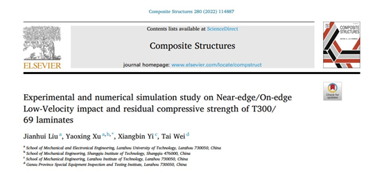 近日,复合材料领域顶级期刊Composite Structures(中科院1区,Top期刊)报道了js33333金沙线路检测刘俭辉副教授、徐姚兴硕士生完成的题为“Experimental and Numerical Simulation Study on Near-edge/On-edge Low-Velocity Impact and Residual Compressive Strength of T300/69 Laminates”的最新科研成果,兰州工业公司易湘斌副教授、甘肃省特种设备检验检测研究院魏泰高级工程师在试验方面给与了大量的指导和帮助。