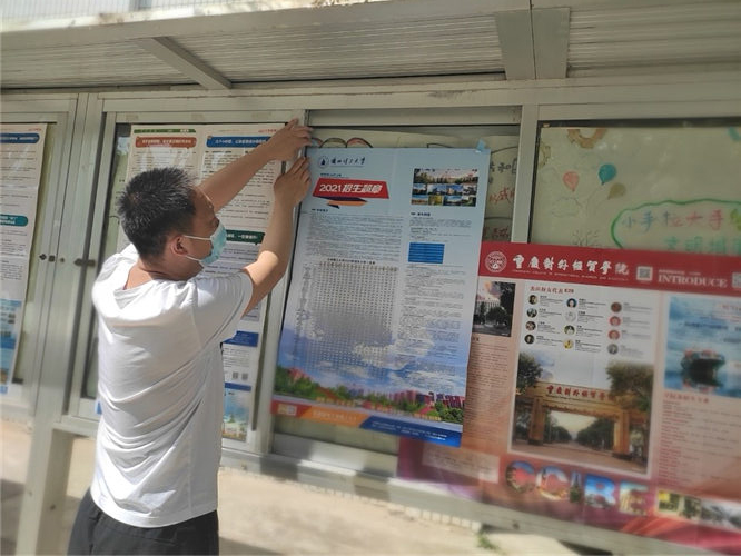 招生宣传老师在会宁县一中张贴招生简章