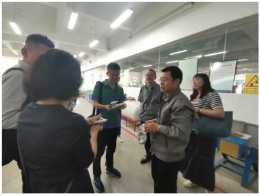 杨东亚主任向民大教师详细介绍了工程训练中心的发展历程、建设规划、团队队伍、安全管理及老员工创新创业能力培养等情况,并带领大家参观了中心各工种实训室和员工科创基地。常军副主任详细介绍了《金工实习》课程体系、工种设置、安全保障、人员配备及质量保证等实践教学相关内容。参观期间,民大同仁就实习内容、课时安排、教师培养及设备更新等感兴趣的问题与工程训练中心《金工实习》指导教师做了深入的交流探讨。